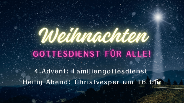 Herzliche Einladung zu unserem Familiengottesdienst am 4. Advent und unserer Christvesper in unserem Gemeindehaus!